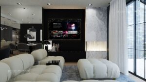 Walking into the apartment, immediately you are greeted by a very spacious open plan concept of a kitchen, dining and living space. Overlooking the city, with spectacular views.