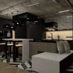 Walking into this house/space from the front door, you are greeted by the stair way that leads upstairs, a dining area with floor to ceiling windows enabling an ample amount of natural light to enter the space. And of course, how can we forget about the heart of the home “the kitchen” on the right.